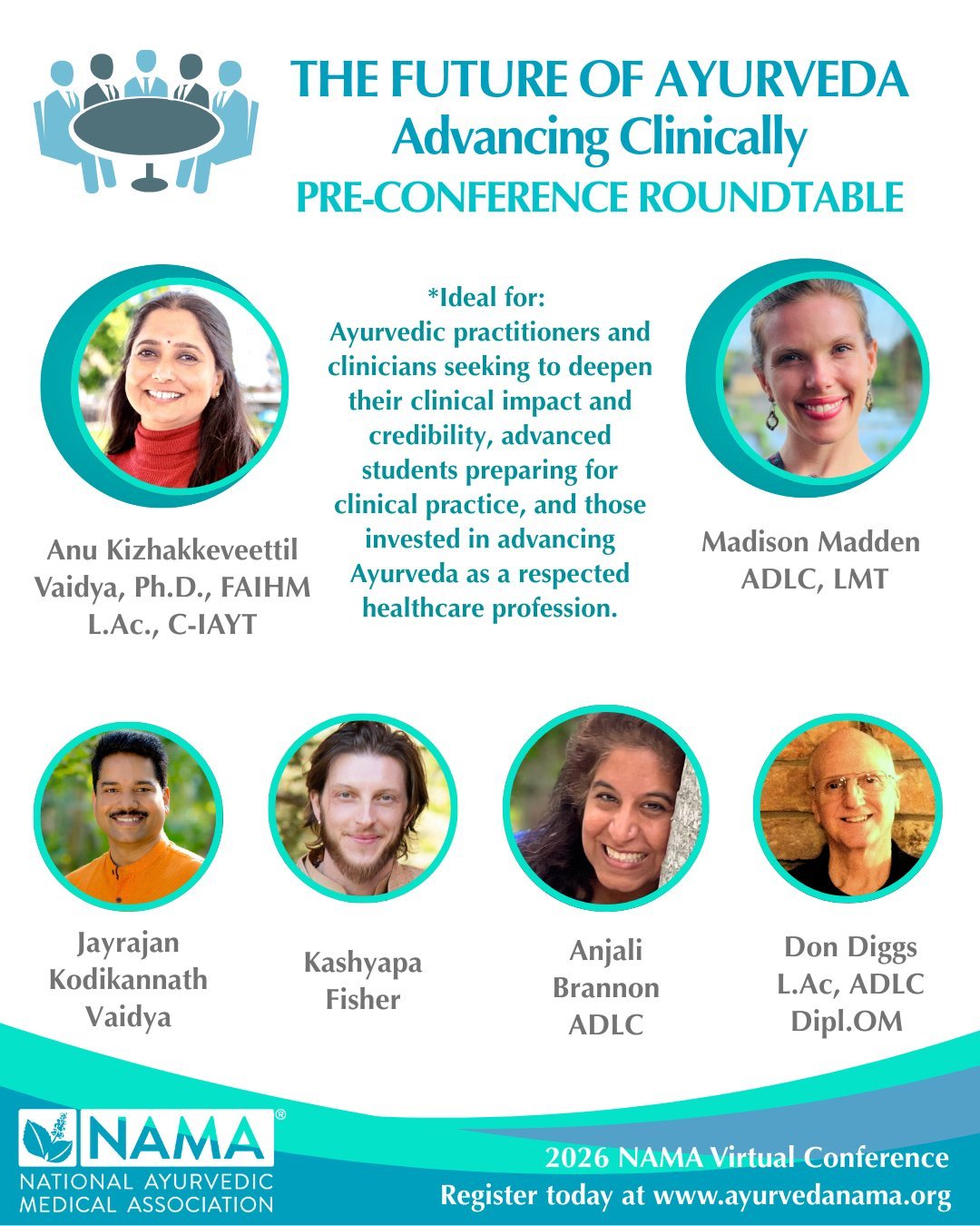 The 2026 NAMA Conference is a global online event focused on Ayurveda and integrative medicine.